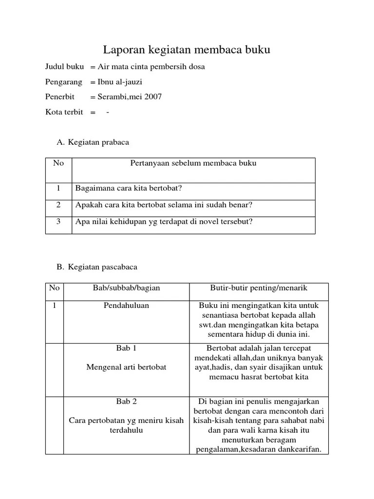 Di kolom informasi penting pada laporan membaca buku nonfiksi, kamu bisa menuliskan hasil ringkasan kamu selama membaca. Download file rapinya di bawah ini : Contoh laporan buku fiksi dan non . Your browser does not support the audio element. Teknis laporan membaca buku nonfiksi dilihat dari contoh laporan di atas,.